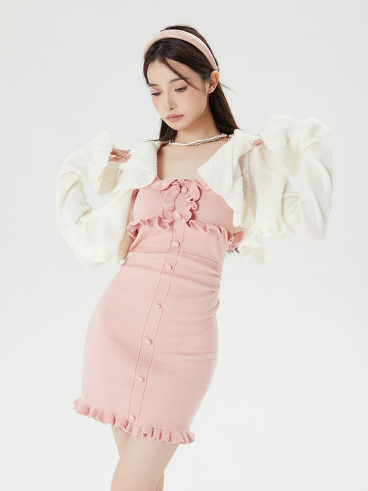 White knitted dress + coat two-piece set PL52887