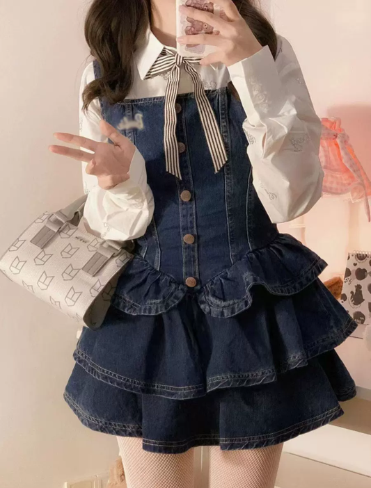 Denim slip dress two piece set PL52900