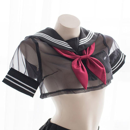 BLACK TRANSPARENT SHEER SHORT SCHOOL UNIFORM PL53592