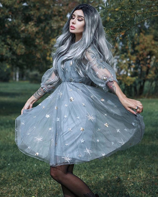 Star sequin gauze dress PL20522