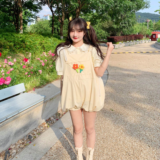 Yellow (suspenders + T-shirt) 2-piece set PL52279