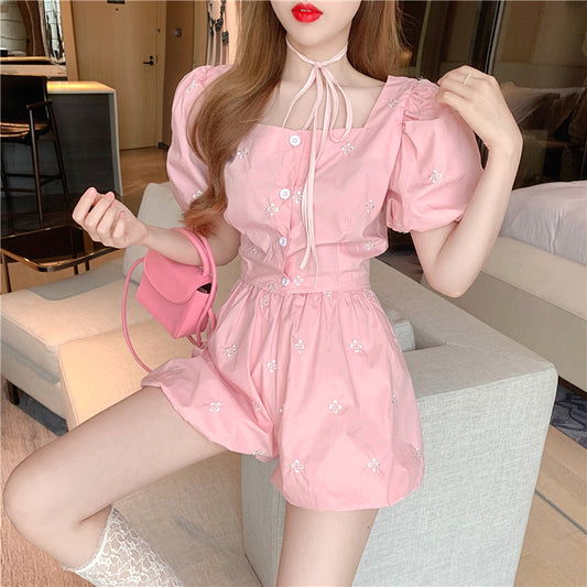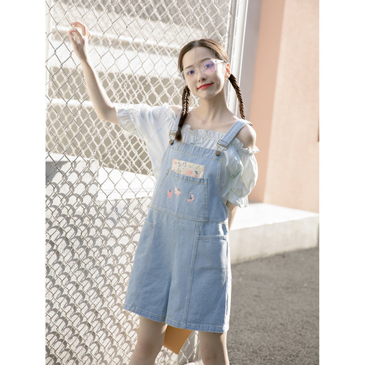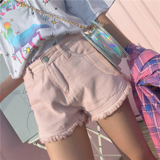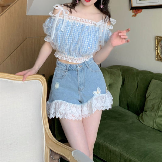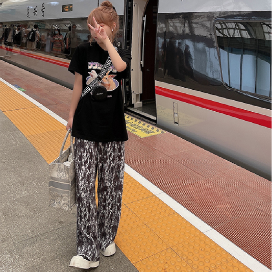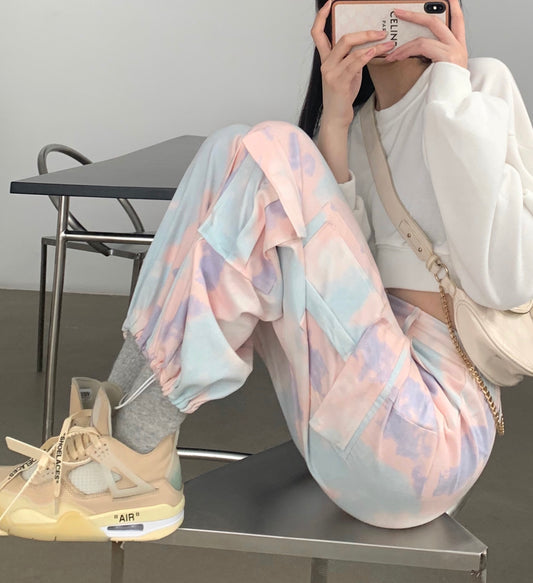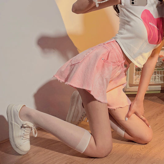 High-waisted tie-dye wide-leg denim shorts PL51692
