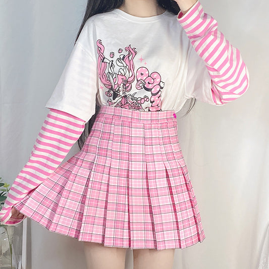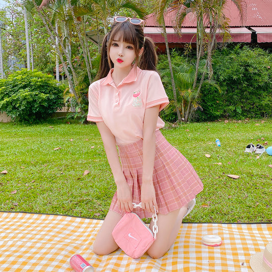 Pink T-shirt + pleated skirt two-piece set PL52282