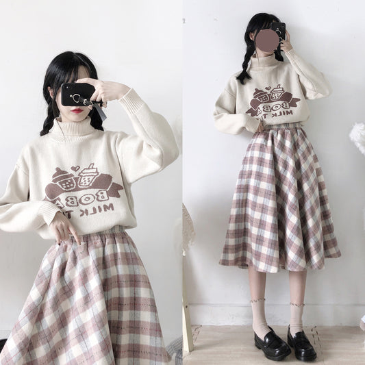 Black and Red Plaid Color Block Pleated Skirt PL53434