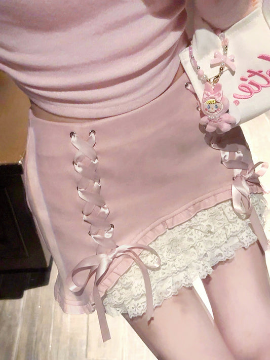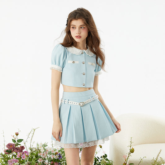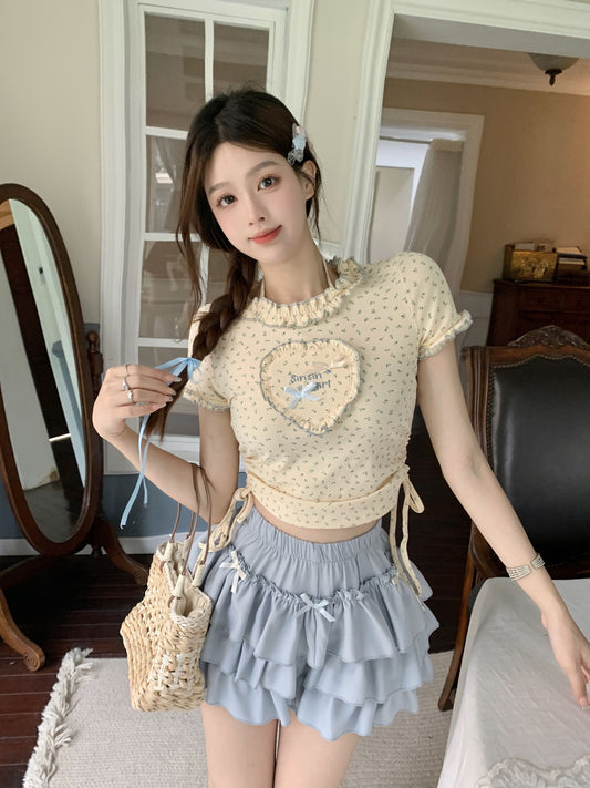 Love short-sleeved T-shirt + bowknot blue cake skirt PL53377