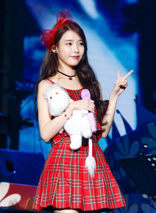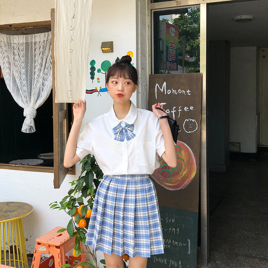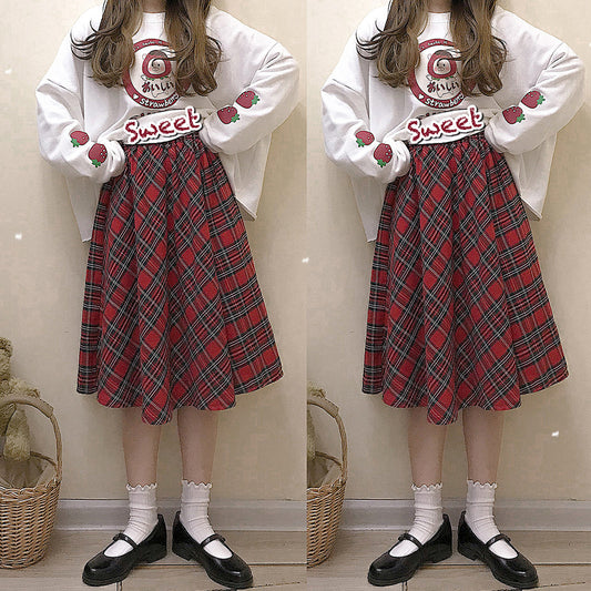 Red plaid suspenders vest + a-line pleated skirt suit PL53437