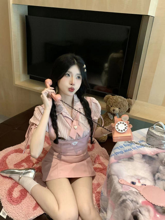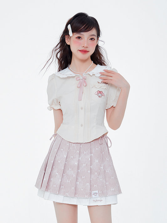 Ballet style puff sleeve shirt + high waist fluffy skirt PL53373