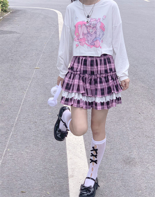 Black pink check pleated skirt PL52121