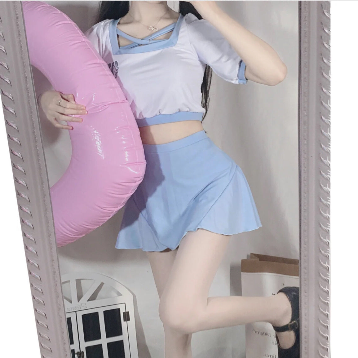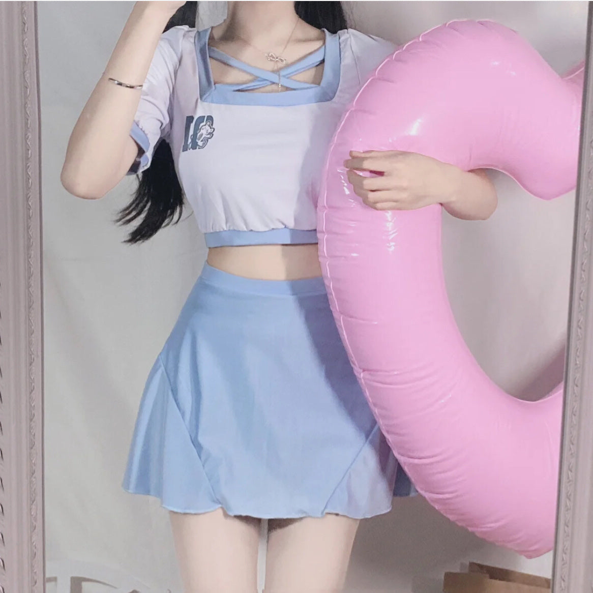 Bear Print Swimsuit Suit Top + Short Skirt PL51771