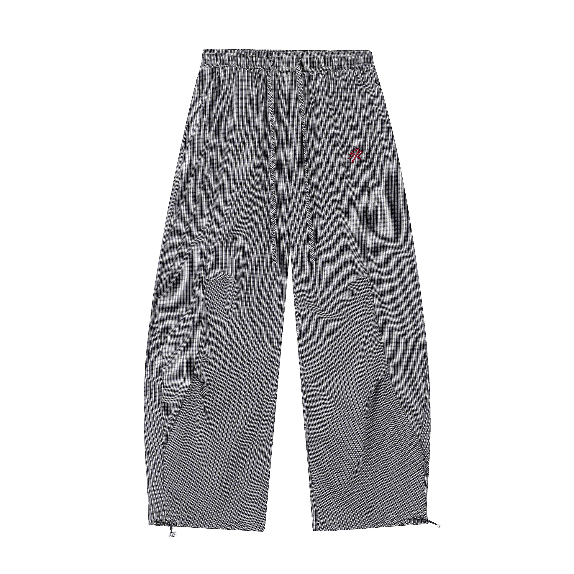 Check embroidered pleated paratrooper pants PA20257