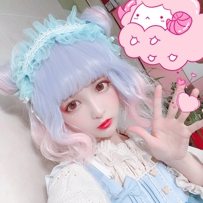 Cute short curly wig + hair bag PL50944