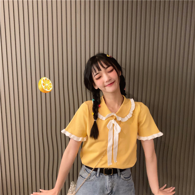 Doll collar tie t-shirt PL20429