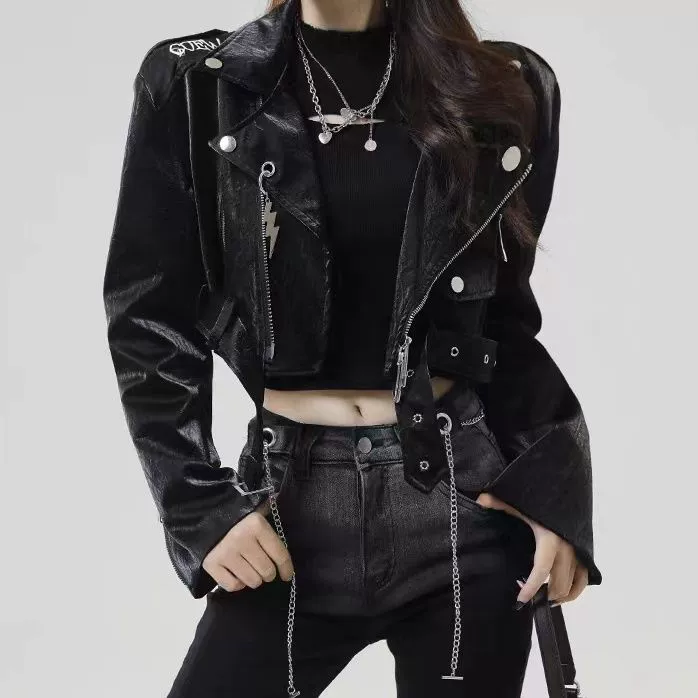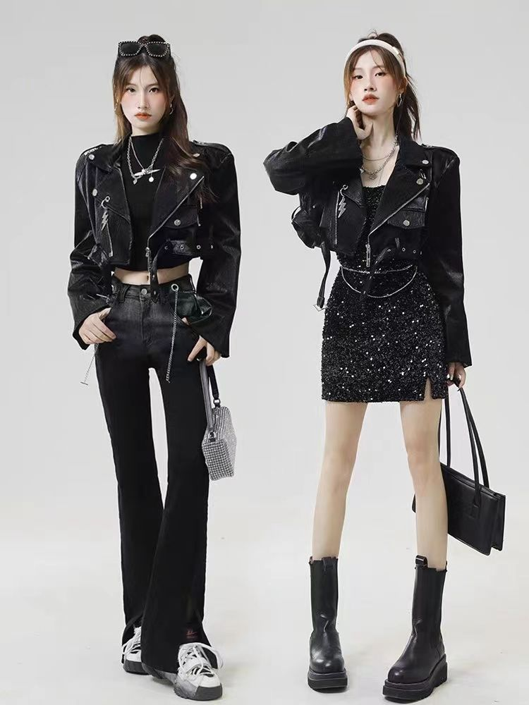 Hot girl waist-baring leather jacket PA20165