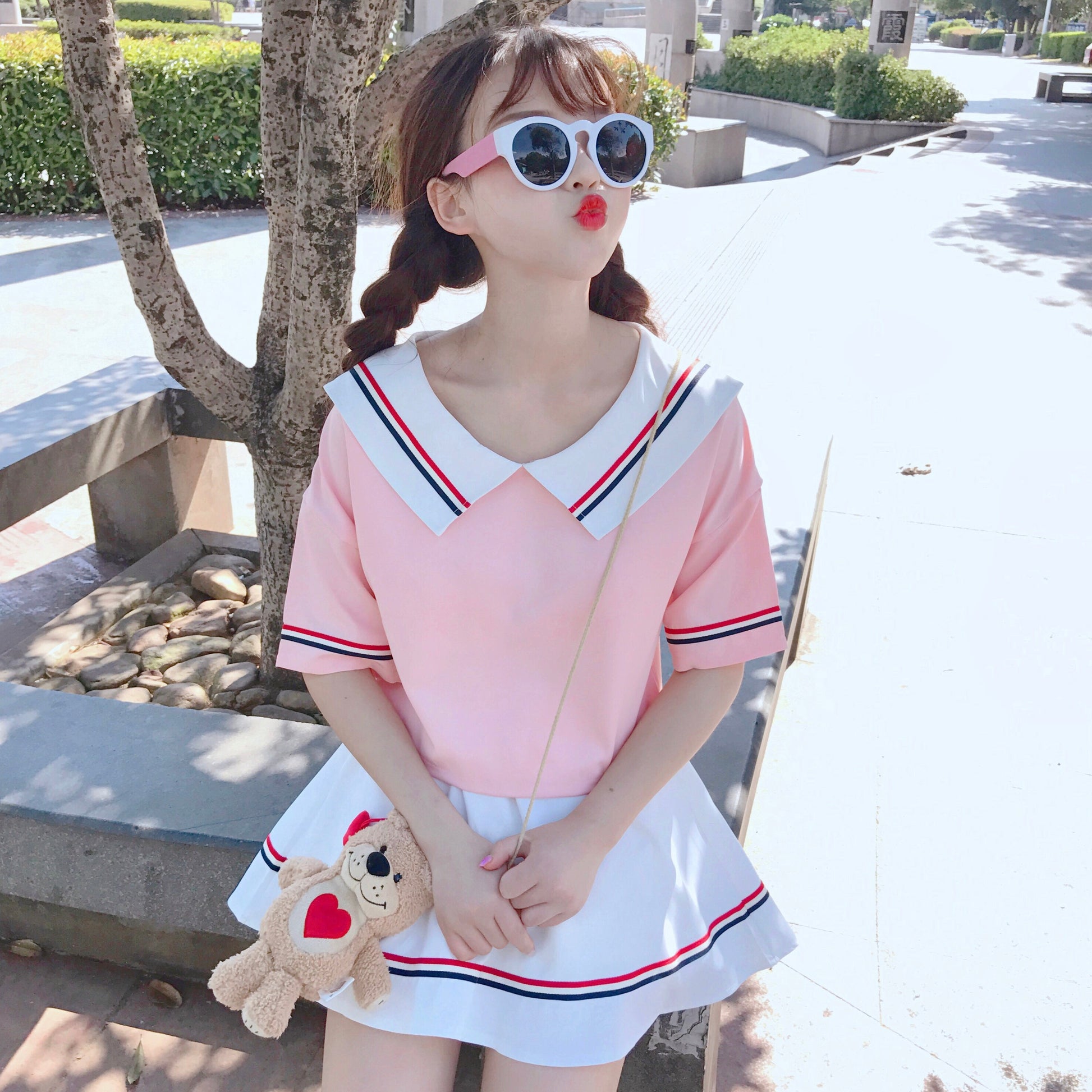 M: Length 44cm Bust 112cm Collar width 46cm Sleeve length 20cm Skirt length 34cm Skirt 60~92cm