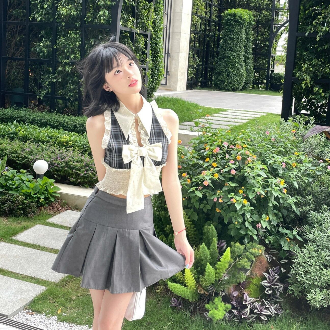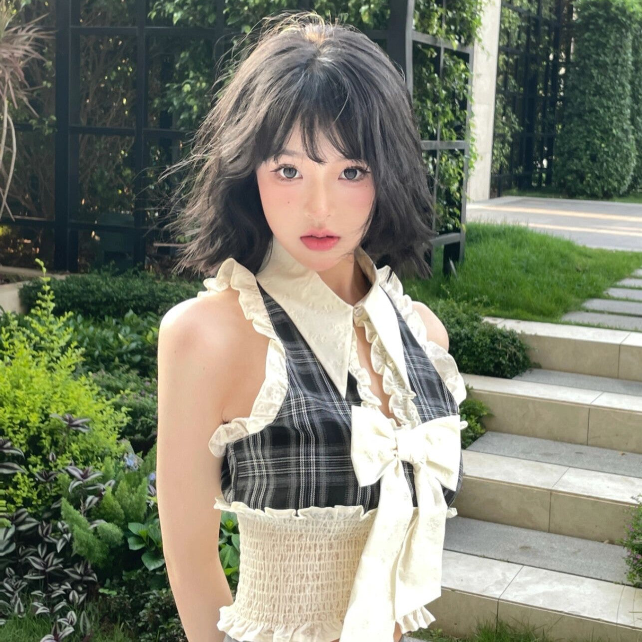 Plaid Mosaic Bow Top PL53002
