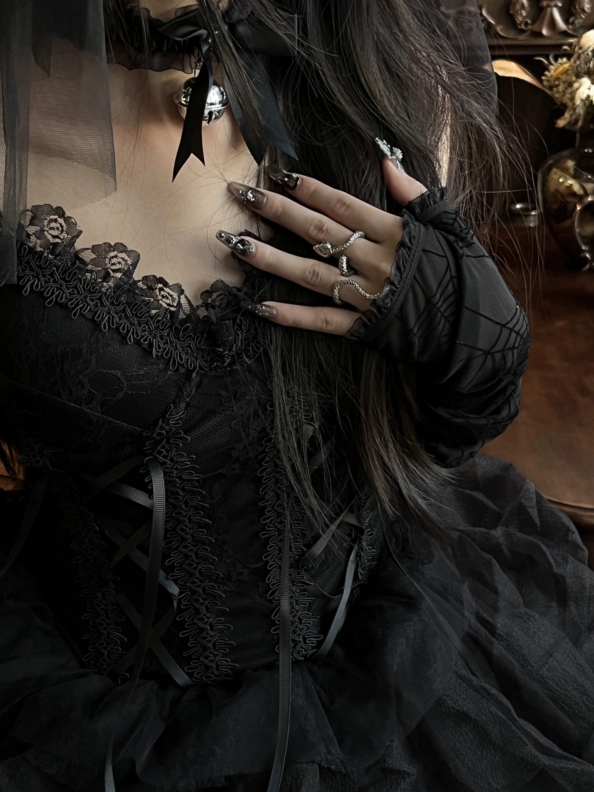 Includes: leather buckle waistcoat + suspender top + puffy skirt + brooch