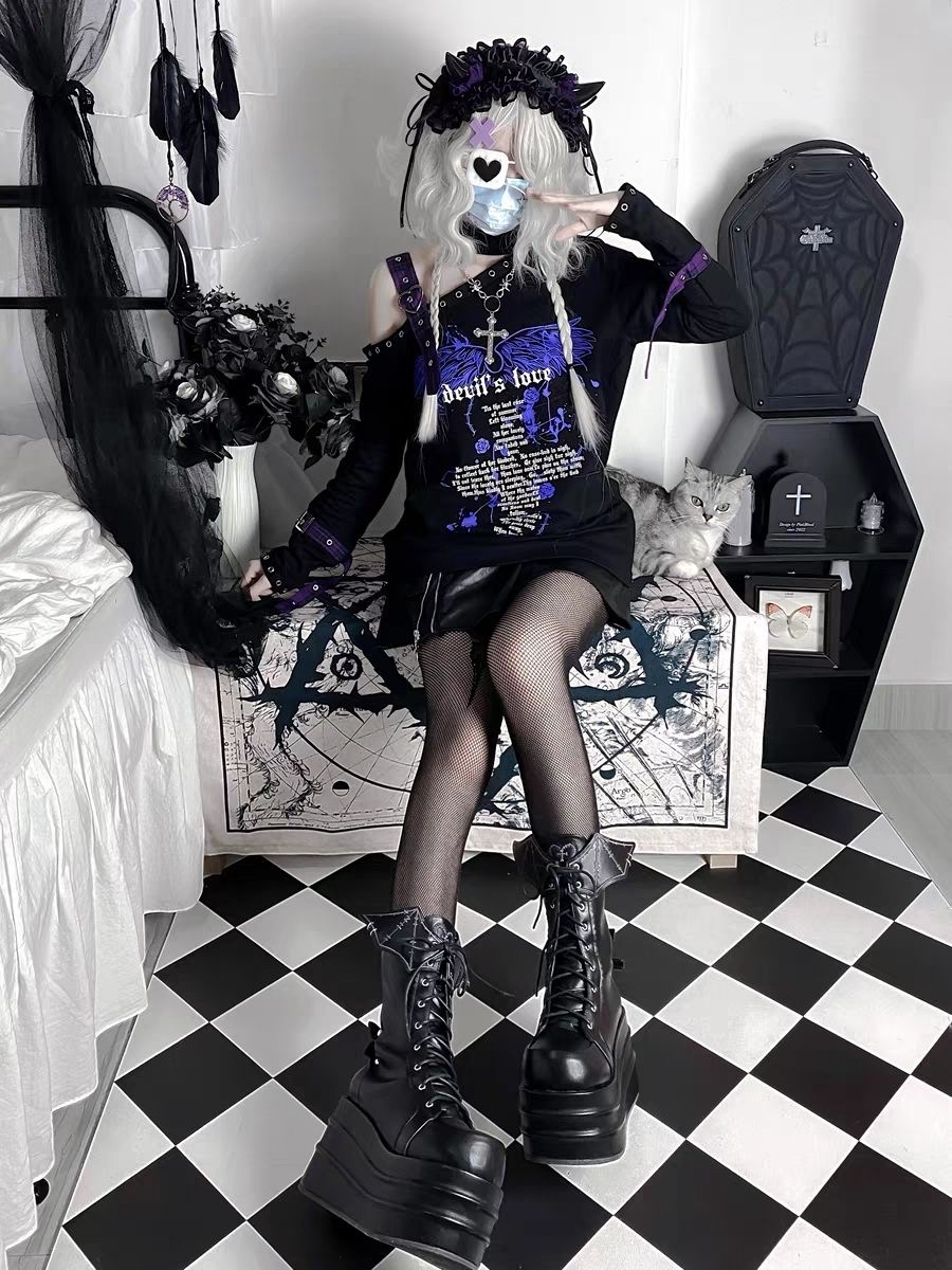 Punk y2k hot girl cross off-shoulder sweatshirt PA20244
